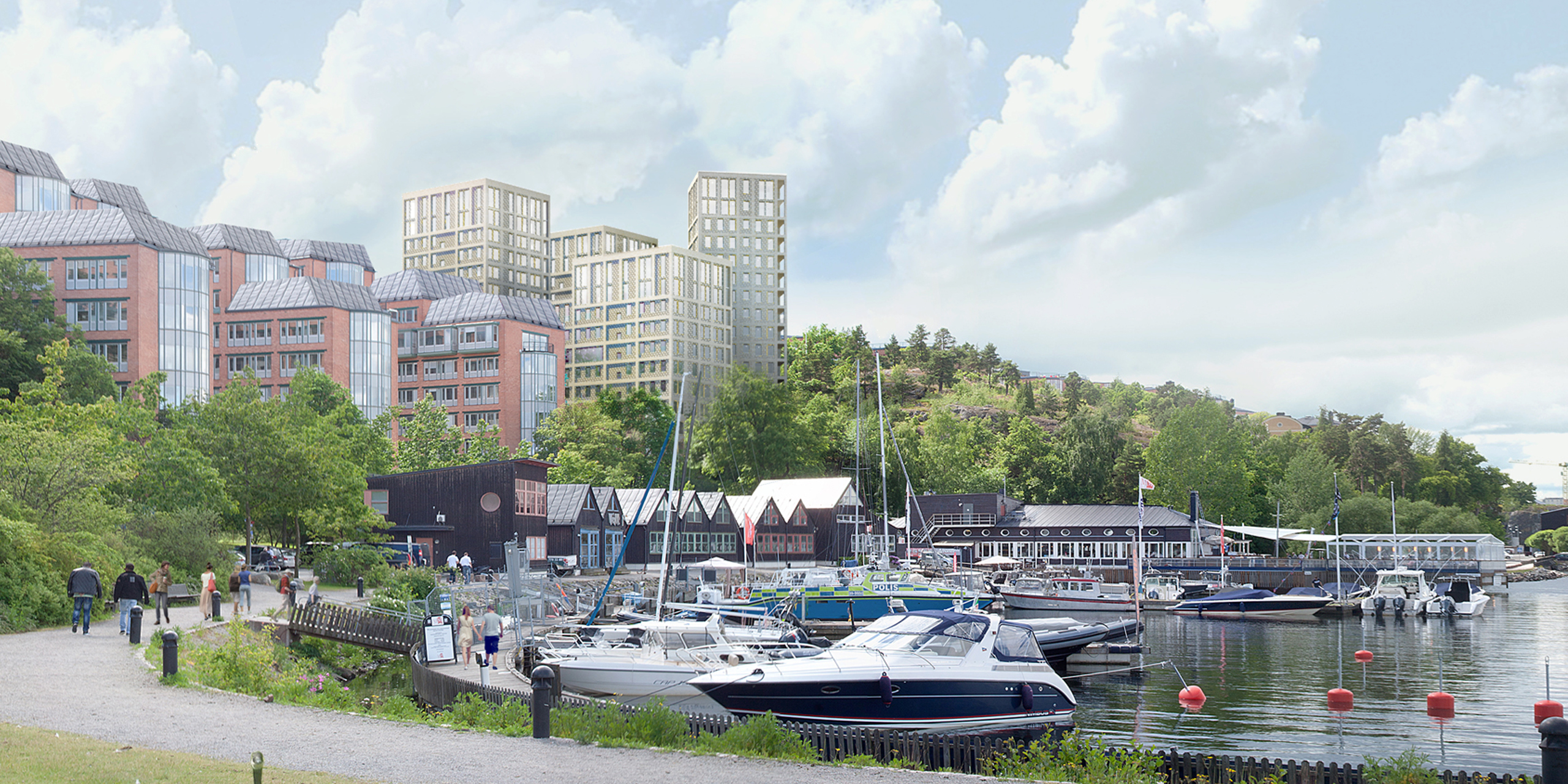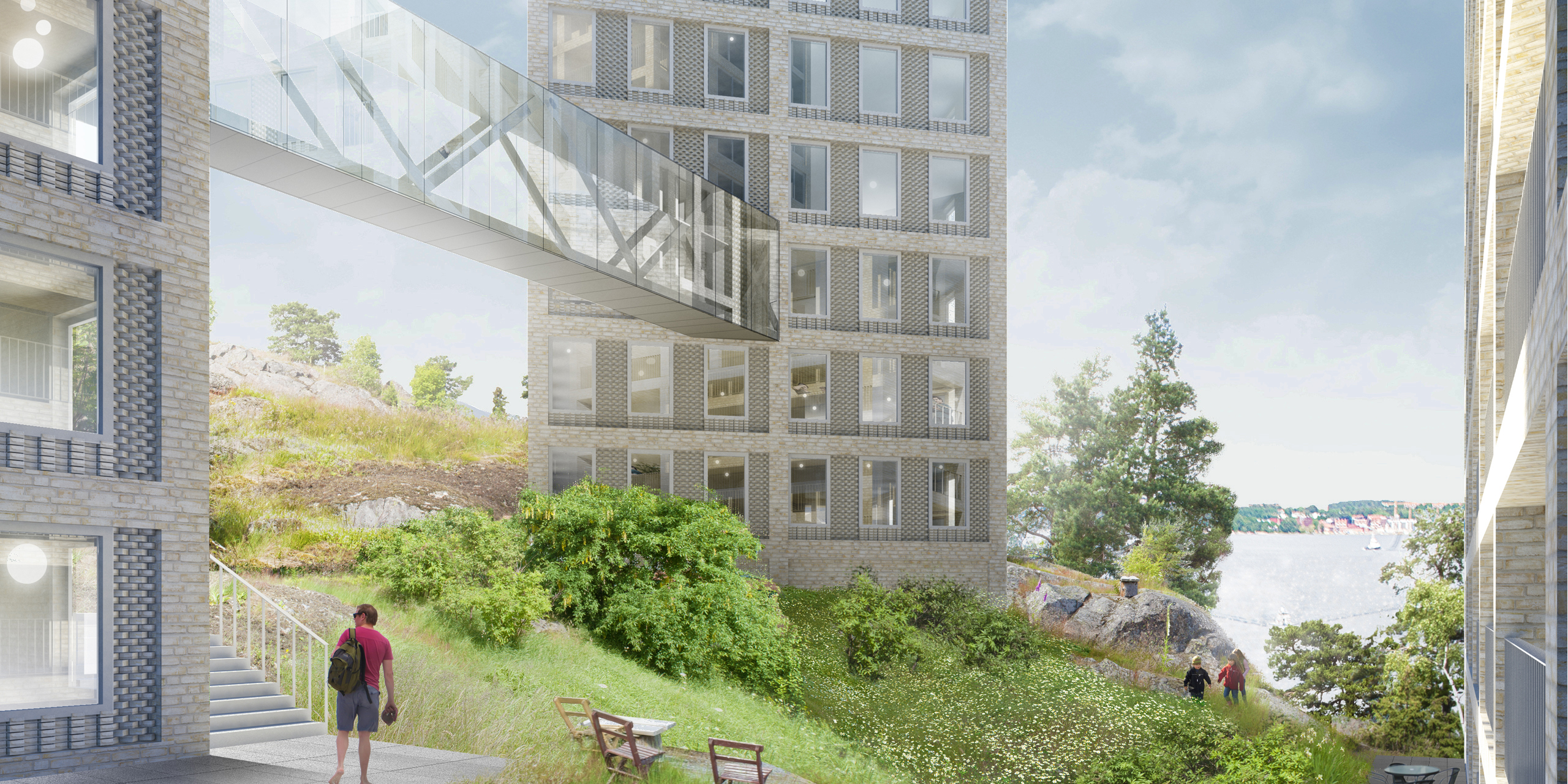 This was the winning proposal in the parallel assignment for Nacka Strand’s most central block.